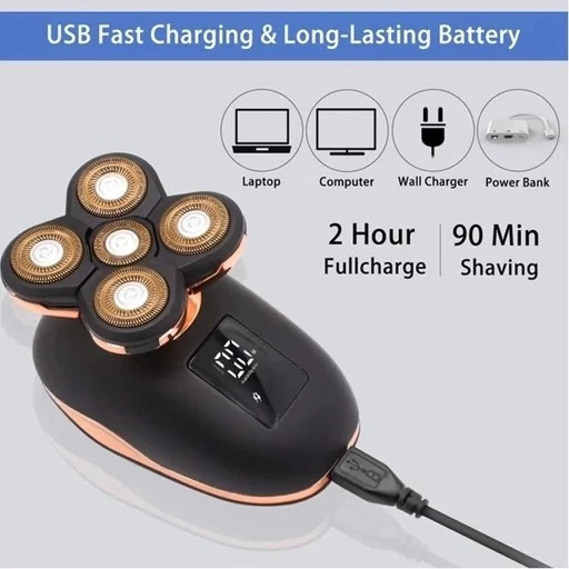 محصولات شرکت روزیا است. یکی از ویژگی های این ماشین ضدآب و قابل شستشو بودن آن است همچنین دارای صفحه نمایشگر می باشد که میزان شارژ آن را نشان می دهد و طراحی بسیار شیک و زیبا دارد دیگر ویژگی برتر این ماشین این است که به وسیله هاب USB (پاور بانک، برق خودرو و لپ تاپ) شارژ می شود. این ماشین داری 5 سری با کارایی های مختلف می باشد. سری مخصوص اصلاح سر و صورت موها را در سایز 1 میلی متری کوتاه می کند همچنین جهت اصلاح موها در سایزهای بلندتر می توان از 3 سری قرار داده شده در بسته استفاده کرد، اندازه ی این سری ها 3، 6 و 9 میلی متری است. سری اصلاح ریش و بدن این محصول از فناوری چهار بعدی بهره می برد. تیغه های تیز و برنده، ریزترین و ضخیم ترین موها را به آسانی اصلاح می کند. دیگر سری موزن گوش و بینی، سری فیس براش جهت شستشوی صورت و همچنین کف ریش زدن و سری ماساژ صورت می باشد. برس پاکسازی این ماشین بعد از اصلاح صورت را ماساژ می دهد. به کمک این برس سلولهای مرده پوست را برداشته و جریان خون را در مویرگ ها به جریان انداخته و سبب شادابی پوست می شود. با استفاده از دیگر سری های این محصول می توان موهای گوش و بینی را همچون دستگاه موزن اصلاح کنید. همچنین دستگاه مجهز به سری خط زن است که می توان از آن در اصلاح خط ریش استفاده نمود. جنس تیغههای این محصول از استیل ضد زنگ بوده، که در برابر هوا و رطوبت از ماندگاری بالایی برخوردار است.